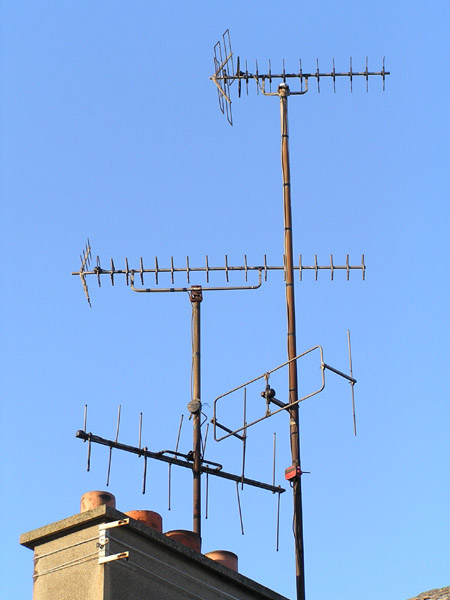 The Republic ended the use of Band I for TV in the late 1990s, but still used Band III. There are generally two channels in use in Band III, so the aerials need to be wideband. Two common types are the log-periodic and the slot dipole, and there’s more about both later. The other distinctive feature of the Irish scene is the prevalence of aerials pointing towards the UK. UHF is used in the Republic, but these UHF aerials are looking towards the mainland.