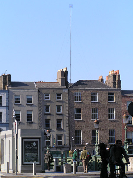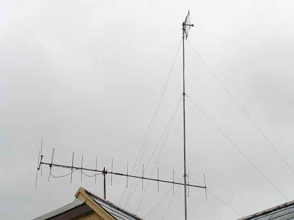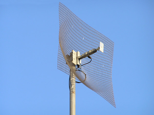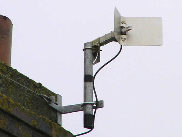 Ireland is one of the few countries of the world to have an extensive MMDS network. MMDS — or Multichannel Multipoint Distribution Service — is ‘cable TV without cables’, using microwave transmissions between 2 GHz and 3 GHz. Each subscriber has a small aerial which usually comprises a broadband dipole, a reflector, and a down converter. The first two pictures show two types of MMDS receiving aerial. Since MMDS can only be received if there is perfect line-of-sight to the transmitting aerial tall masts are common, as the third and fourth pictures show.