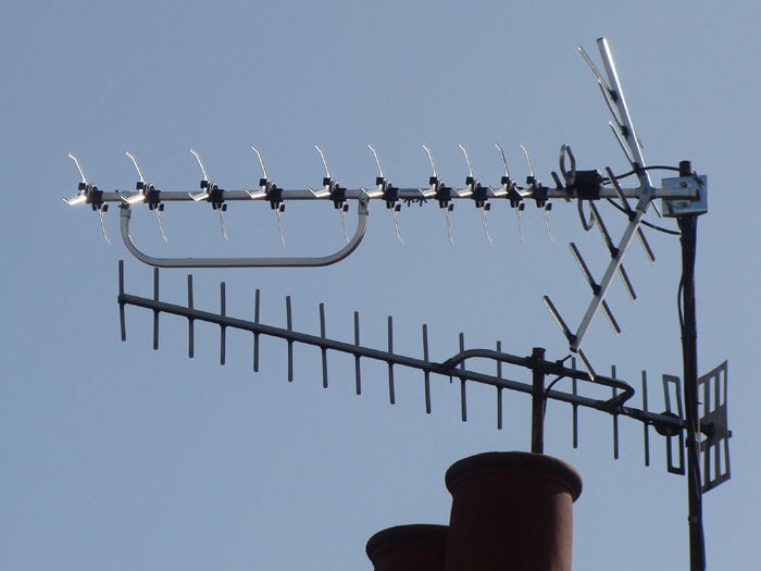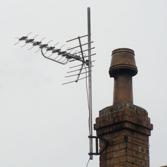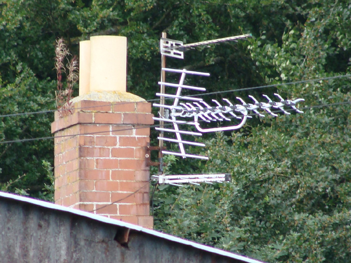 Aerial Photography - DIY Gallery Now we come to a bizarre phenomenon of our times which is spreading like wildfire across the UK. These are just a few of the examples I have seen myself or have been sent. The thing under these aerials that is shaped like bike handlebars is called a ‘cradle’ or ‘support arm’. The mast should be fixed to the approximate midpoint of the cradle, and the aerial fixed to the cradle. If the boom has a join in the cradle should straddle it. This gives a strong, secure, and balanced mounting. The force of the wind has far less twisting effect on the mast than if the aerial is end mounted. For some mysterious reason an awful lot of DIY installers are end-mounting the aerial and pointlessly fitting the cradle as well. The instructions for the aerials bought by DIYers can be misleading, as can the catalogue illustrations. At the time of writing the Argos website shows the 'Gold High Gain Outdoor Aerial' mounted this way. The sheer number of these installations makes me realise just how many aerials are sold to DIYers. What a pity that all the aerials are wideband when in many cases a grouped one is the correct choice, and that so many of these quite large and ugly things are going up in places where a small ten element array would work as well or better. People obviously don’t realise that the cost of all the bits and pieces at the DIY shed can approach the ‘supply and install’ price of a good local aerial installer.