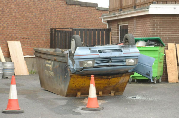 OK, I admit it, this is totally off-topic. But how did the car get there? Did the driver survive the impact?