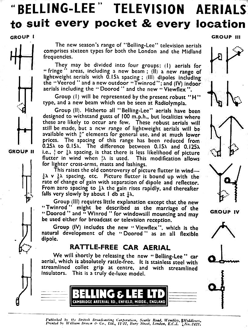 is a 1949 one-page product leaflet from Belling Lee of Enfield.