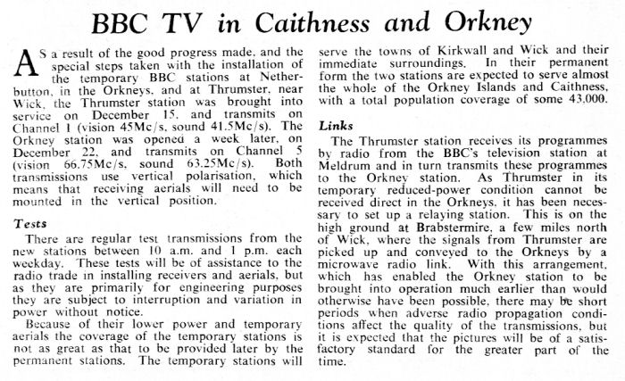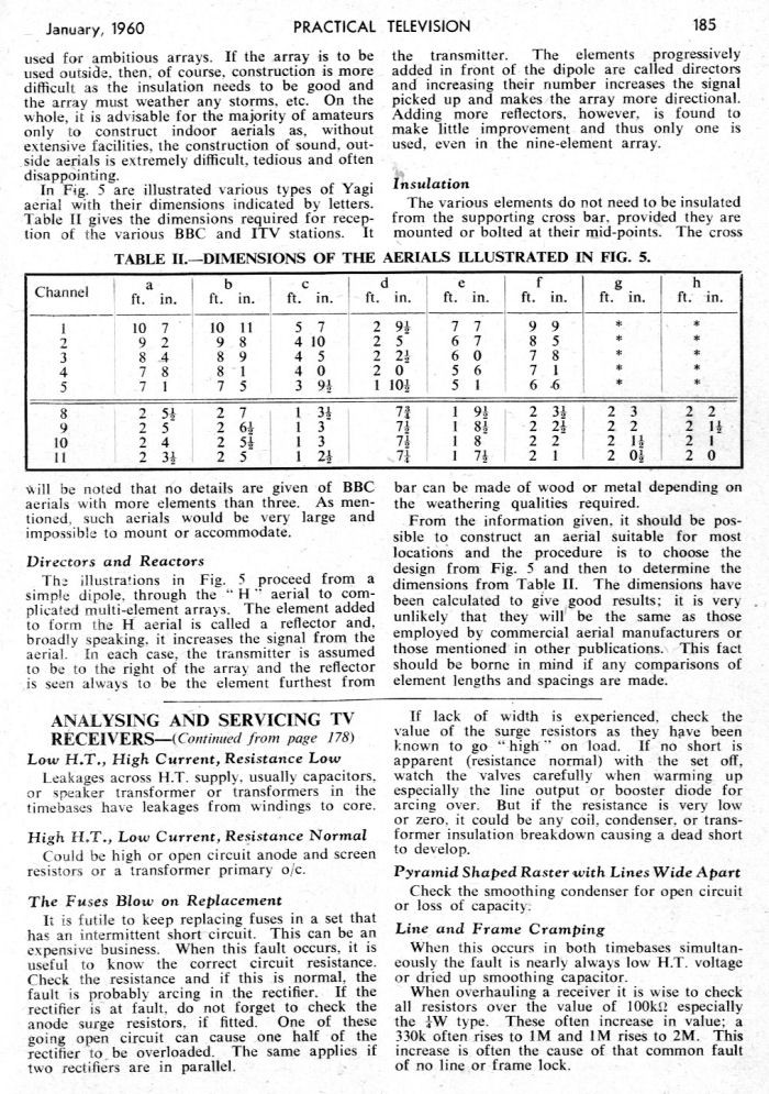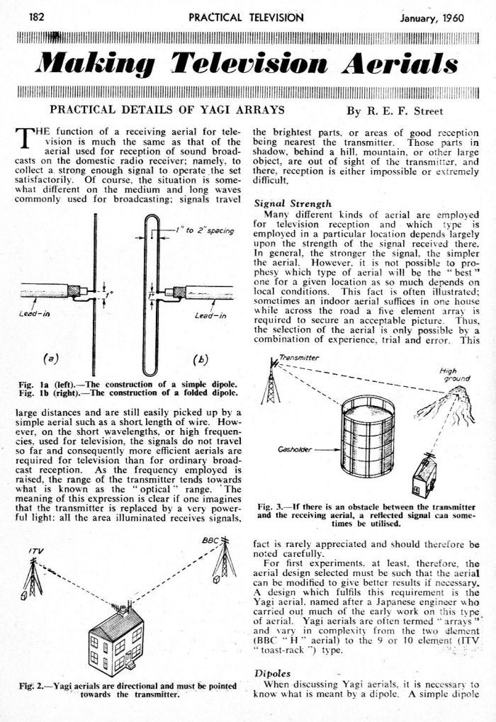 A very fifties cover for the first month of the sixties! A news item about the spread of BBC TV to the north of Scotland, and a constructional item: aerials for Bands I and III.