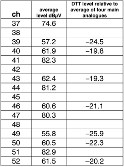 The screenshot with channels 39, 40, and 41 shows that there is only a tiny gap between the muxes on channels 39 and 40. The ch40 mux is offset downwards by 167kHz to move it away from the not-quite-perfectly-suppressed lower sideband of the ch41 analogue video carrier, but there is no offset on ch39, so the two muxes are almost touching. Let’s hope the receivers can cope.
