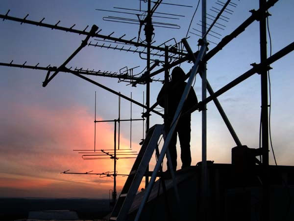 This isn’t our work really. It’s Paul looking at the tangle of old aerials at the Emley Moor monitoring station. We replaced most of these aerials, eventually.