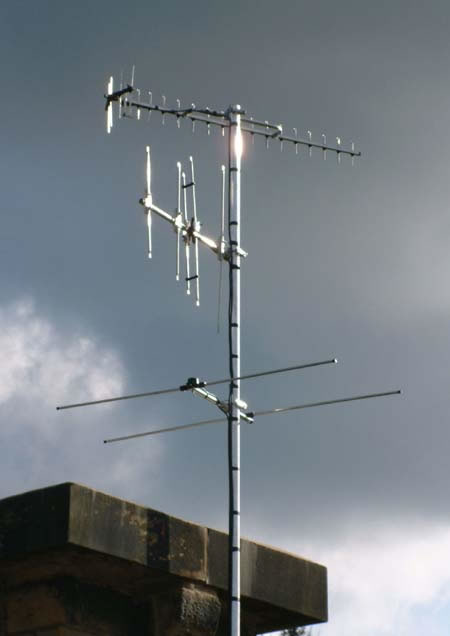 These are the aerials for a distribution system in a converted pumping station. UHF was from the local low-powered relay transmitter, which had great inequalities of signal levels for no apparent reason. Channel filters solved that problem. DAB and FM reception were only just possible because the area is officially ‘unserved’, with no reception possible on a car radio, for instance. DAB and FM were therefore a worthwhile addition to the system because it was the only way the residents were going to get any radio reception, unless they had a satellite receiver.