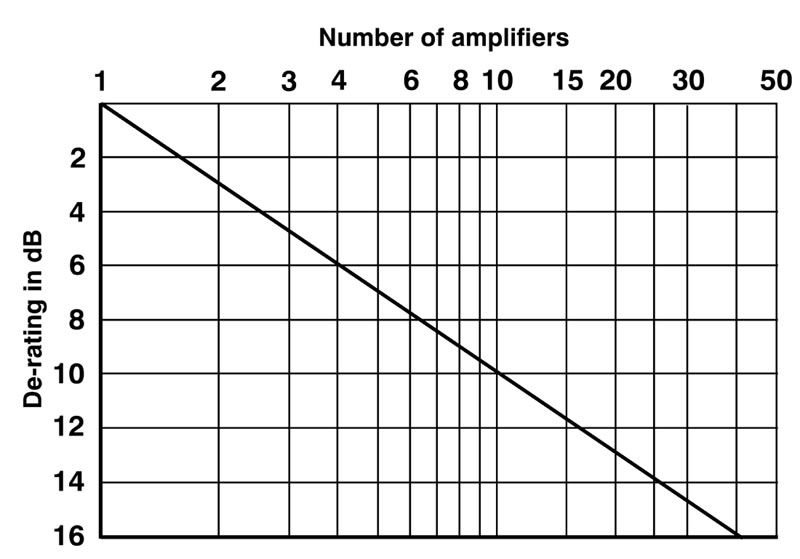 If you have four amplifiers in cascade you must de-rate them all by 6dB. This is why the ‘end-to-end’ amplification on a system should always be kept to a minimum.