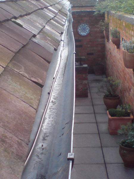 This is a favourite trick of some of the dish installers employed by a certain large company. Normal coaxial cable is not designed to be immersed in water. The outer sheath is not perfectly waterproof, and although rain has little or no effect immersion for any length of time will affect the performance of the cable. If the fall pipe has been blocked it can be quite amusing to hoist up one end of the cable and throw a large amount of moss and general gunge onto the ground below. “No extra charge for cleaning your gutter missus!”